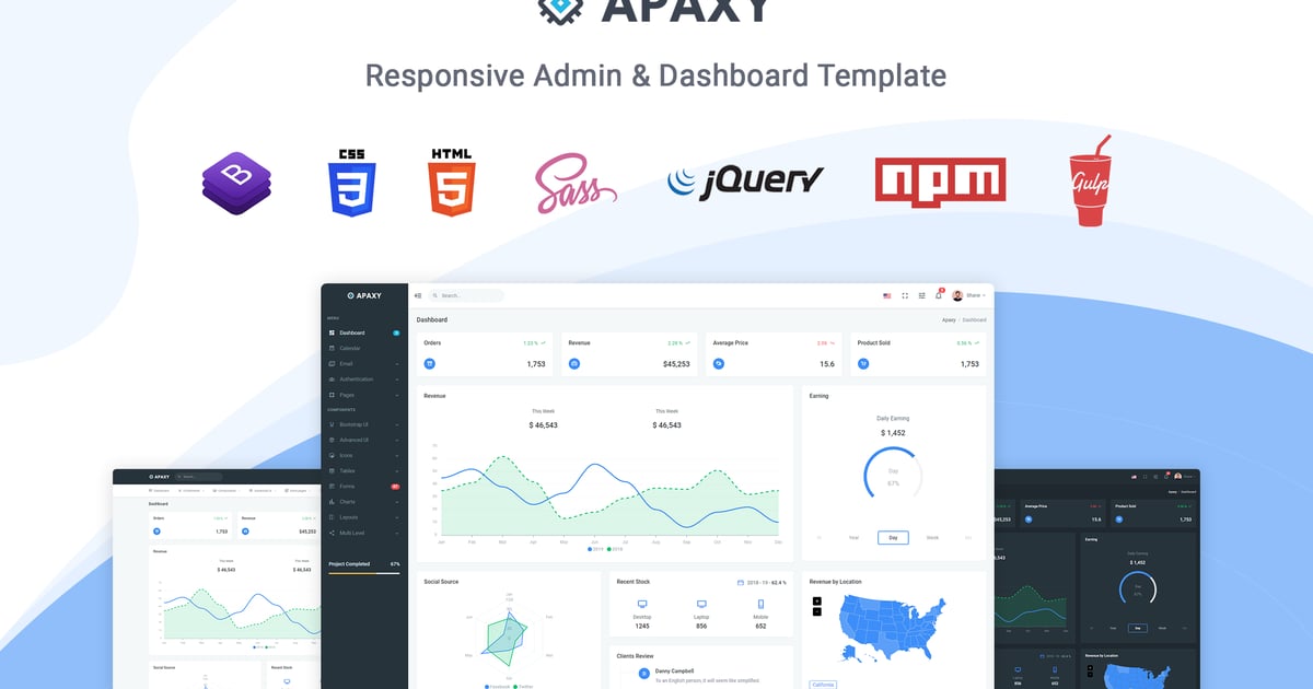 Apaxy ist eine Bootstrap 4-basierte, vollständig reaktionsfähige Admin-Vorlage. Apaxy Admin basiert auf einem einfachen und modularen Aufbau, mit dem es einfach angepasst werden kann. Es enthält viele wiederverwendbare und schöne UI-Elemente, Widgets und weitere Funktionen. Dies ist die ideale Vorlage für Ihr nächstes Dashboard- oder Admin-Webapp-Projekt. Apexy hilft dir dabei, deinen nächsten Bootstrap noch schneller als zuvor zu erstellen. Es kann verwendet werden, um eine Saas-basierte Oberfläche, ein Administrator-Dashboard oder alles, was Sie im Web erstellen möchten, zu erstellen. Apexy hilft Ihrem Team dabei, schneller voranzukommen und Entwicklungskosten zu sparen.