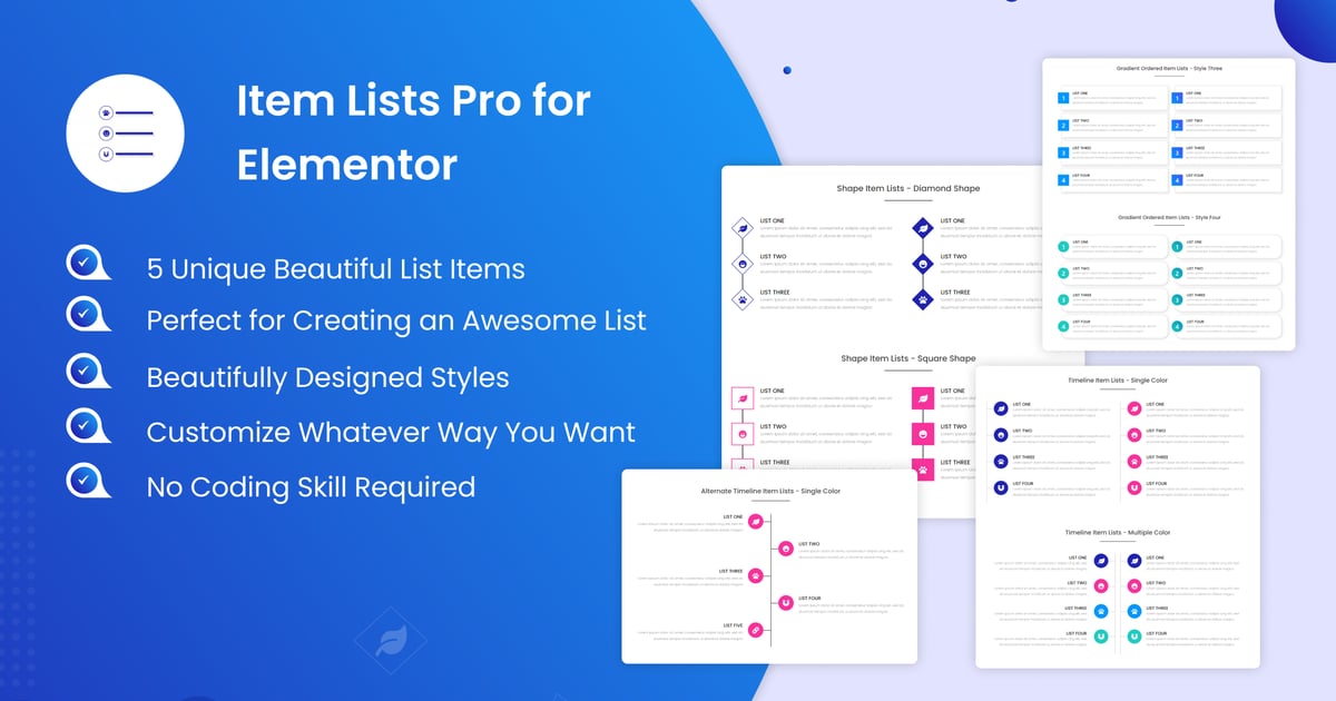 Artikel Lists Pro für Elementor-Plugin ist das beste Bullet Lists-Paket für WordPress. Es ist eine perfekte Lösung, um Aufzählungszeichen auf kreative und leicht lesbare Weise zu formatieren