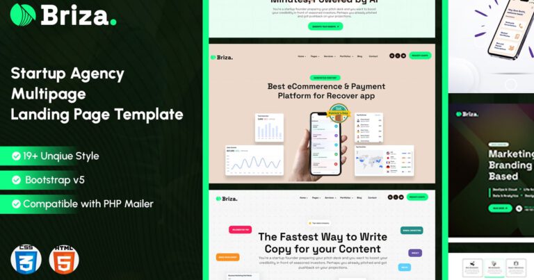 [ad_1] Beschreibung Birza — Mehrseitige HTML-Landingpage-Vorlage für Startup-Agenturen, die für Unternehmensdienstleistungen, Berater, Beratungsunternehmen und andere Unternehmen entwickelt wurde. Barsa hat ein einzigartig modernes und vollständig anpassbares Layout, es basiert auf Bootstrap 5. Es hat 9 verschiedene Layouts: LeadGen-, Click Through-,…