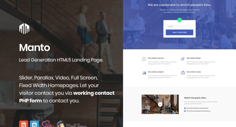 [ad_1] Manto ist eine einzigartige und flexible HTML5-Landingpage zur Lead-Generierung. Diese Vorlage bietet viele verschiedene Möglichkeiten, mit denen Sie auf einfache Weise eine schöne, atemberaubende und einzigartige Landingpage erstellen können. Wählen Sie aus 9 Homepage-Versionen: Slider, Parallax, Video, Vollbild, Feste…