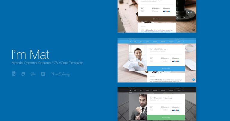[ad_1] I’m Mat ist eine leistungsstarke HTML5-/CSS3-Vorlage für persönliche Lebensläufe, die auf dem Bootstrap 3-Framework basiert und im Material Design-Stil entworfen wurde. Es ist perfekt als Lebenslauf-/vCard-Website für alle. Dank des responsiven Designs wird es auf jedem Gerät fantastisch aussehen…