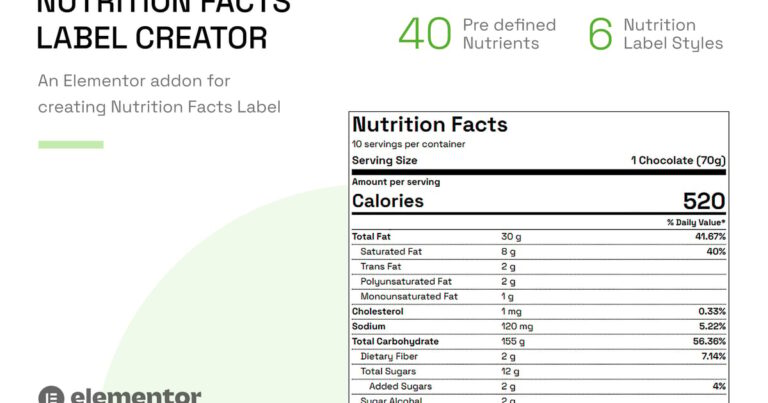 [ad_1] Ein Elementor-Addon zum Erstellen von Nutrition Fact Labels für Ihre Online-Lebensmittelprodukte, Rezepte und Ihren Lebensmittelblog. Das Plug-in hilft Ihnen dabei, Nährstoffe aus einem vordefinierten Satz von 40 Nährstoffen wie Protein, Vitamin, Fett, Zucker, Zink, Magnesium, Calcium usw. hinzuzufügen. Die…