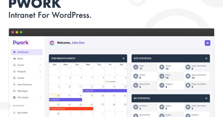 [ad_1] Alles in einer Intranet-Lösung Sie müssen kein aufgeblähtes Thema und eine Reihe von Plug-ins mehr verwenden, um Ihre eigene Intranet-Plattform zu erstellen. Pwork funktioniert mit jedem Thema und enthält alles, was Sie brauchen! Persönliches Dashboard Das Benutzer-Dashboard enthält per…