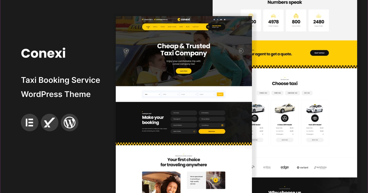 Conexi ist ein frisches und stilvoll aussehendes WordPress-Thema für Online-Taxibuchungen, Taxidienste, Autovermietungen und private Autovermieter. Es kann auch problemlos für Taxi- und Taxiagenturen, Autovermietungen und Autowerkstätten verwendet werden.