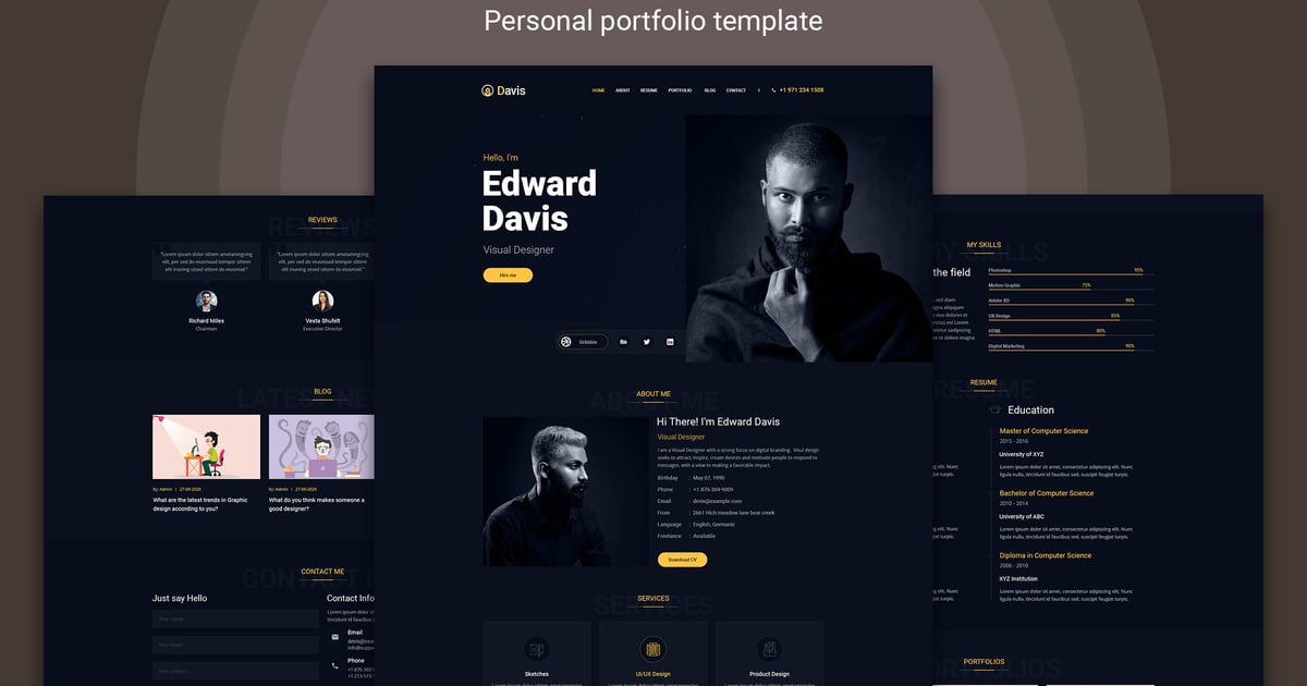 Davis – Vorlage für ein persönliches Portfolio , Zielseiten-Vorlagen, Seitenvorlagen Einschließlich: bootstrap & reinigen