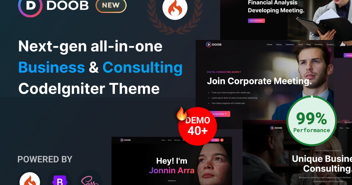Willkommen bei der CodeIgniter-Vorlage von Doob Business and Consulting. Doob wurde für Unternehmen, Unternehmen, Finanzunternehmen, Reisebüros, SEO-Agenturen, persönliche Portfolios, Freelancer, Kooperationsprojekte, Anwendungen, SaaS-Landingpages und verschiedene Arten von Beratungsdiensten entwickelt. Es ist mit CodeIgniter ausgestattet und enthält mehr als 40 Home-Varianten. Weitere werden in Kürze folgen