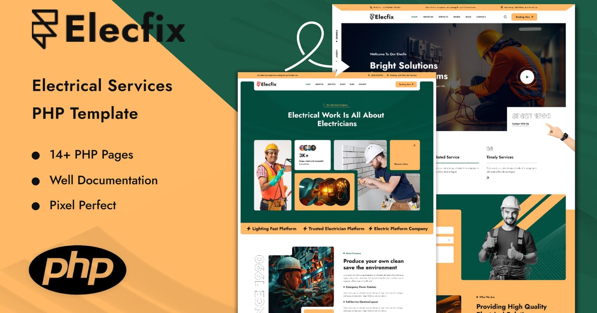 Elecfix – PHP-Vorlage für elektrische Dienstleistungen , Seitenvorlagen Einschließlich: zertifiziert & elektrisch