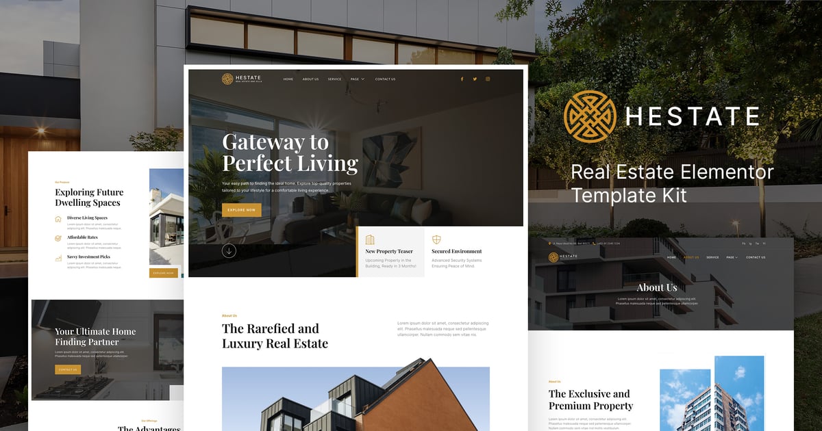 Hestate — Immobilien-Elementor-Vorlagen-Kit, Template Kits Einschließlich: wohnung & makler