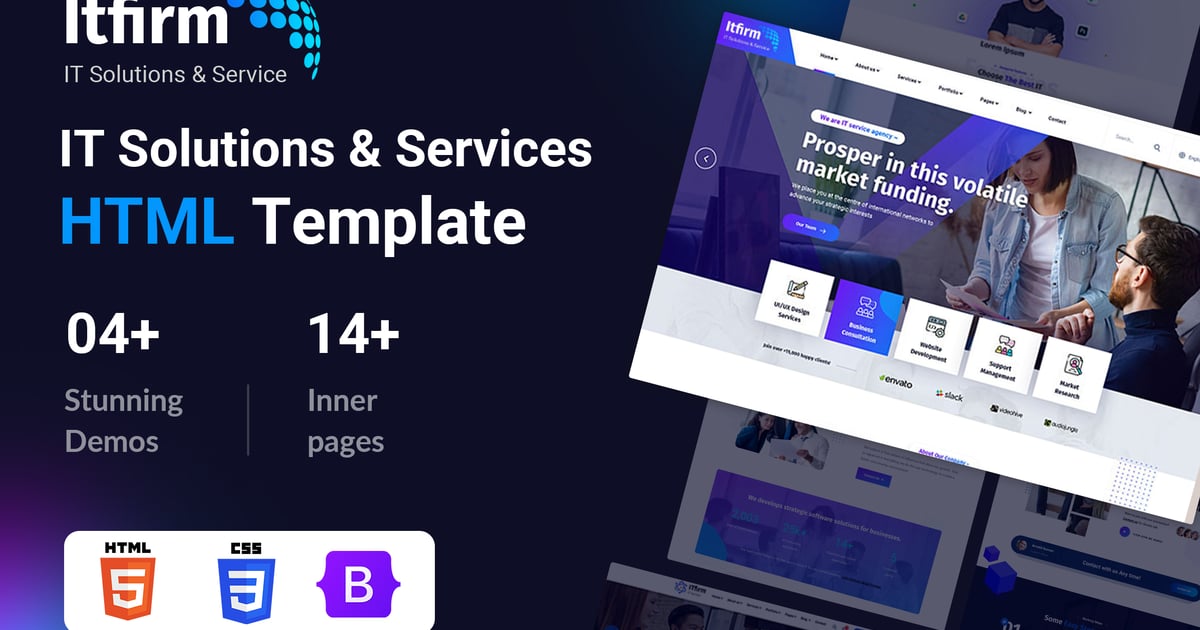 ITFirm ist eine Vorlage für moderne IT-Lösungen und Technologiedienstleistungen. Die Vorlage eignet sich hervorragend für jede Agentur, IT-Service, IT-Lösung, Saas, App Landing, Marketing, Kreativagentur, digitales Marketing, Portfolio, SaaS-Produkte, Software, Startups, App-Showcase und verwandte Produkte/Dienstleistungen. Holen Sie sich jetzt ITFirm Vorlage!