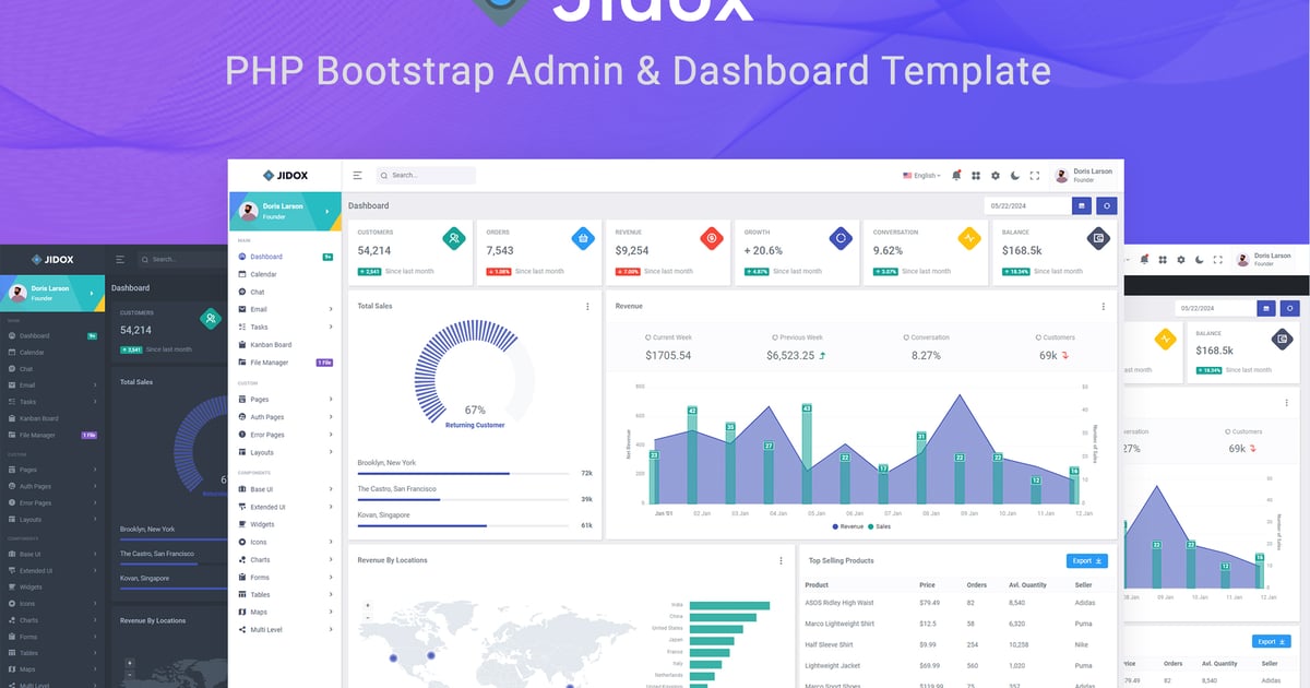 Jidox — PHP Bootstrap Admin & Dashboard Vorlage ist eine einfache und schöne Admin-Vorlage, die mit Bootstrap CSS v5.2.3 erstellt wurde. PHP ist eine voll ausgestattete Premium-Admin-Dashboard-Vorlage in PHP