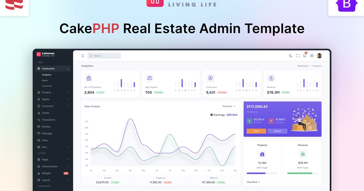 Lahomes – CakePHP Vorlage für Immobilien-Admin, Administrationsvorlagen Einschließlich: frei & php