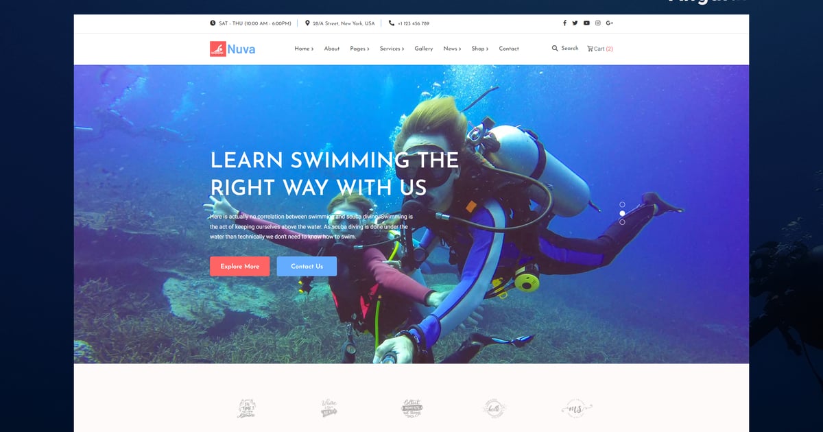 Nuva ist eine reaktionsschnelle moderne HTML-Vorlage für Schwimmzentrum oder Club, Tauchschule, Surftraining und Schnorchelwebsite. Die Vorlage ist W3-gültig und enthält ein besucherorientiertes Retina Ready-Design-Layout. Nuva ist Premium und vollständig kompatibel mit allen Arten von Mobil-, Tab-, Notebook- und Desktop-Geräten. Die Vorlage basiert auf Angular, Bootstrap und Sass.