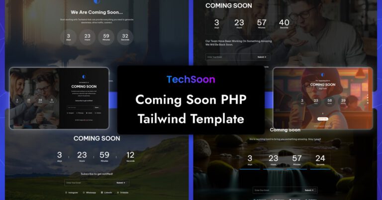 [ad_1] Techsoon — Coming Soon Tailwind CSS 3 PHP Vorlage ist ein…