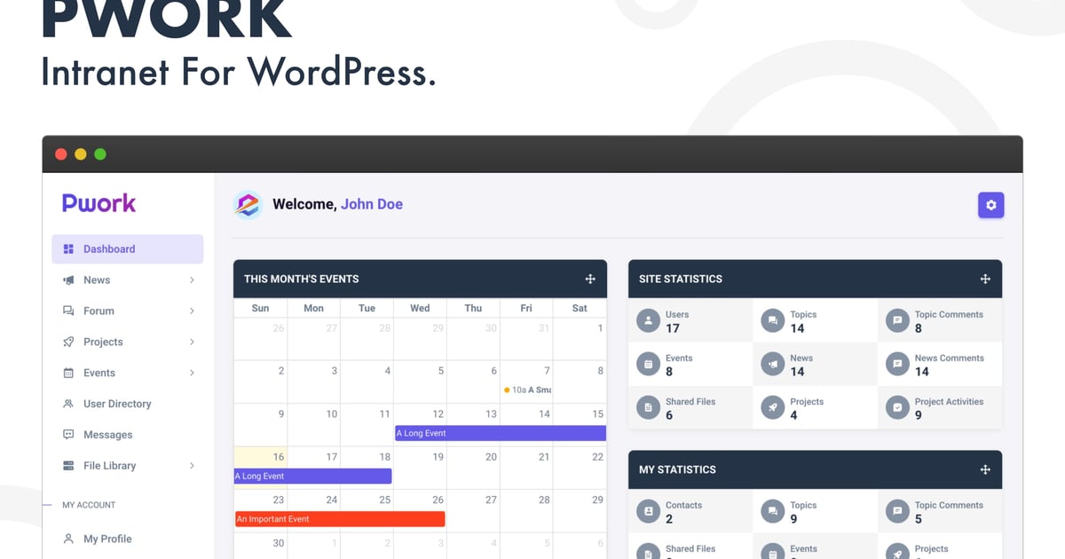 Sie müssen kein aufgeblähtes Thema und eine Reihe von Plug-ins mehr verwenden, um Ihre eigene Intranet-Plattform zu erstellen. Pwork funktioniert mit jedem Thema und enthält alles, was Sie brauchen!