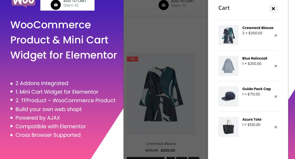 tfminiCART&PRODUCT — WooCommerce-Produkt, Miniwagen-Widget für Elementor